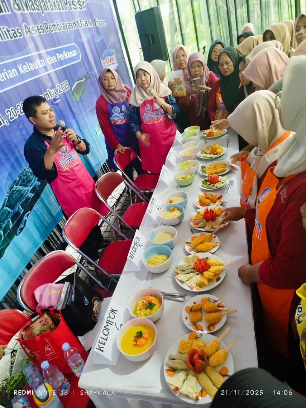 PoncoWarta - Dalam rangkaian giat Pemberdayaan Kampung Nelayan Merah Putih melalui Pengembangan dan Diversifikasi Usaha Nelayan, ibu-ibu yang ikut serta dalam kegiatan ini melaksanakan praktek pengolahan ikan menggunakan berbagai teknik dengan belajar langsung dari @chef_mils. Olahan ikan yang dipelajari ini berupa olahan ikan mulai dari sajian MPASI dan frozen food, serta menu ala resto. Chef Mils membagikan teknik memasak seperti cara menjaga tekstur ikan, teknik marinasi, menentukan tingkat kematangan, hingga trik plating sederhana agar sajian lebih menarik.
