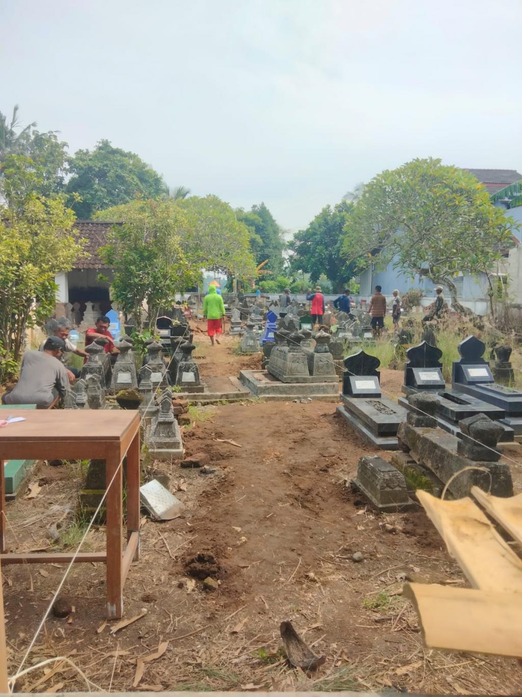 Dalam kerja bakti tersebut, warga membersihkan rumput liar, menyapu daun kering, mengangkat sampah organik, serta merapikan area sekitar makam. Dengan membawa peralatan seperti sabit, sapu, dan cangkul, warga bergotong royong memastikan lingkungan makam tampak bersih, tertata, dan nyaman untuk kegiatan ziarah.