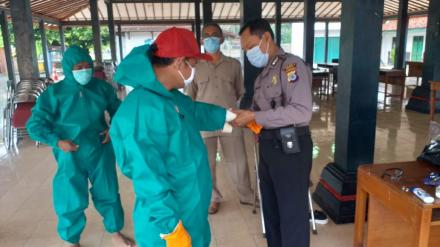 Para relawan pemakaman jenazah memakai peralatan APD lengkap sebagai salah satu standar protokol kesehatan dalam pemakaman jenazah yang diduga sebagai salah satu pasien Covid-19. Bertempat di pendopo balai desa Poncosari, tim relawan pemakaman dari FPRB Bimosuci Desa Poncosari mempersiapkan peralatan APD dan bersiap untuk melaksanakan pemakaman.
